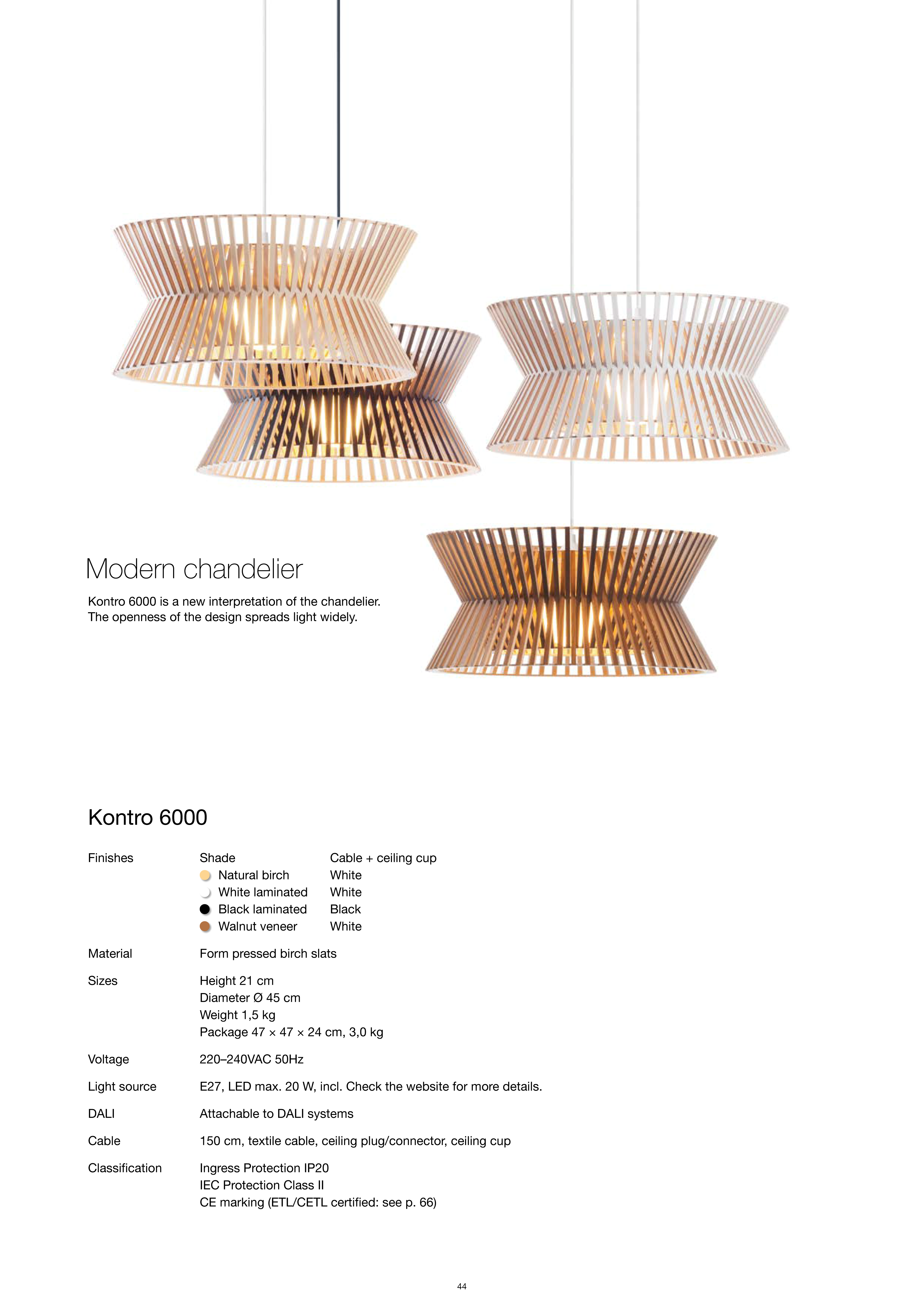 Kontro 6000 er en ny fortolkning af lysekronen. Designets åbenhed spreder lyset bredt.